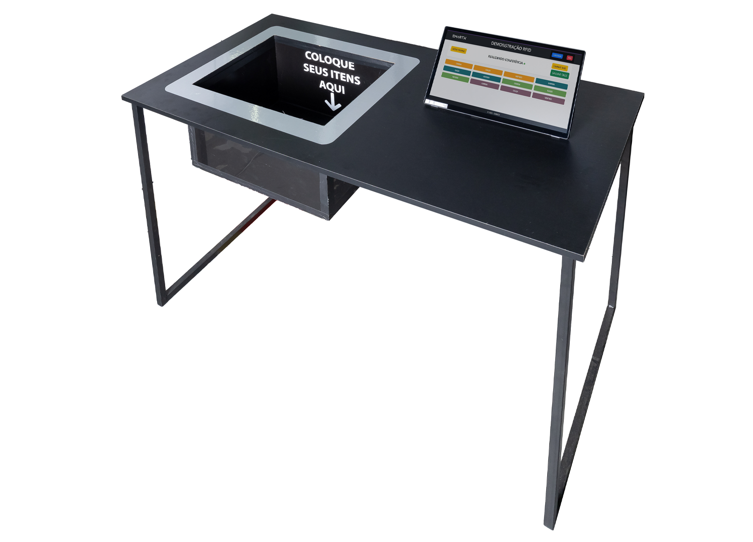 A Mesa de Conferência RFID é usada para conferir grandes volumes de itens de forma instantânea. Basta posicionar as peças sobre a mesa: em poucos segundos, ela identifica todos os produtos através das tags RFID — sem precisar de leitura manual, contato visual ou abertura de caixas.